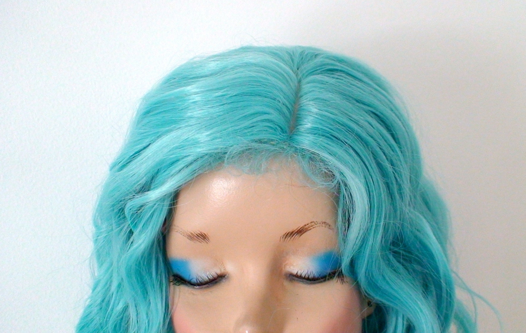 Turquoise Blue Wig 16 Wavy Hair Wig Heat Friendly Etsy